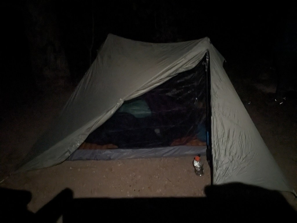 It began to rain lightly around 10pm. Lightly tapping onto our tent while we laid on our inflatable sleeping pads, the rain was lulling me to sleep. My eyelids were heavy and my down quilt was tucked tightly around me while I rubbed my legs together like a cricket with sheer delight. Then, when I was on the brink of being dead to the world, like a crack of lightning, the shocking urge to pee hit me. Like a woman possessed, I began the molting of the quilt cocoon, the trading of the down jacket for the rain jacket, the begrudging pulling on of the hiking boots all while trying to do so in a space the size of a MF coffin while my husband slept angelically besides me. I emerged from the capsule tent and was being pelted by rain while trying to find an area to pee but it seemed like everywhere I was looking to go felt too close to the PCT hikers. I eventually just said fuck it and turned off my headlamp and squatted because I wasn’t sure whether I was going to feel more wet from the rain or my bladder on the verge of exploding. The deed was almost done and then I heard something rustle behind me. I froze. Light on. The rustling got louder. Stream intensified. I heard heavier rustling that was approaching me. I shot up and bolted. I launched back into that tent soaking wet convinced that something was about to take a bite out of my ass and not in the way that I wanted. I felt like a little kid hiding behind a sheet from whatever thing lurked out in the night. Usually roaming outside in the dark is fine for me but damn, no me gusta.
