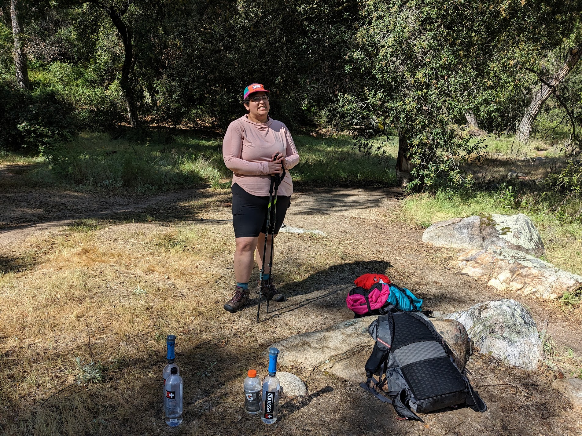 The first mile or so is pretty flat. It’s about 3.5 miles to get to where we were going to camp and it was along the Pacific Crest Trail. The next two miles are essentially all uphill. What was great about it though was that the grade of the trail was so gentle that my legs didn’t feel like they were going to explode at any point. I didn’t really feel a ton of exertion but the heart rate monitor on my watch said otherwise. Since I didn’t want to die in the middle of a trail and have Travis drag my size 18 body down a ravine and back to civilization, I decided to take things painfully slow. He would hike at his normal pace, which for me is practically jogging, and disappear up the trail and I would have Tokischa in my ear rapping about being a “Perra en calor” while I took minuscule footsteps to keep the heart rate down but stay on beat. Eventually I would catch up and we would take a sip of water and he’d bound off again and my sloth approach would continue.